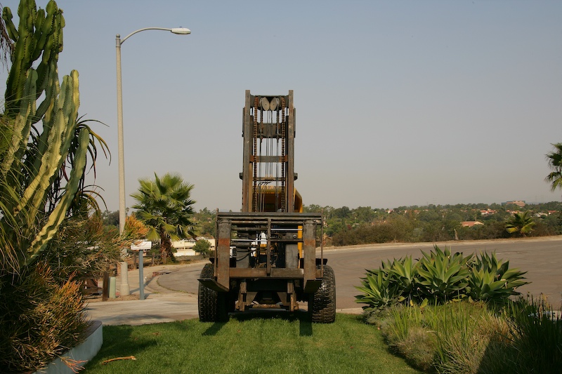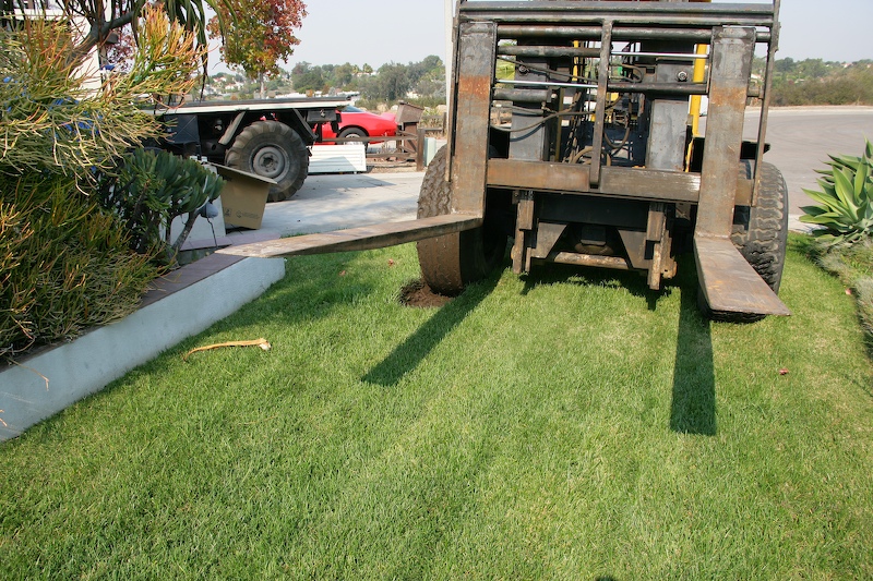This is a big forklift. But, big is heavy. The rental folks told me that this was a "rough terrain" lift, and therefore should be able to accommodate the front yard easily. Not.