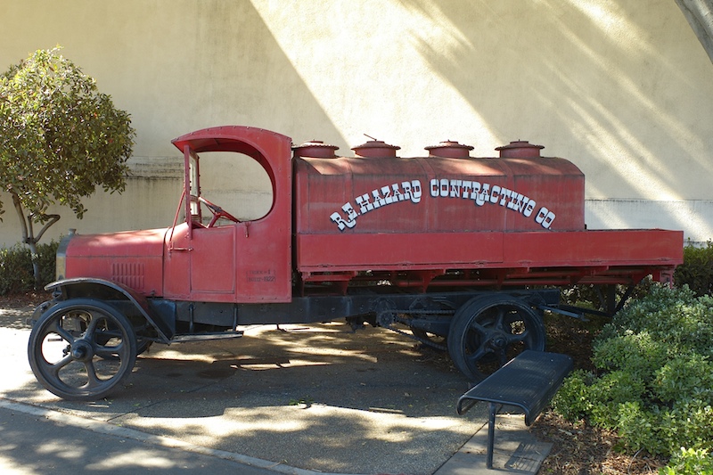 At the entrance to the museum, the curators had positioned this old truck that was used by the local contracting firm R.E. Hazard. This thing was a gem from 1922. The wheels were solid cast iron with solid rubber tires and the final drive to the load-bearing wheels was a chain, like a bicycle, only on steroids. This was as basic as they come.