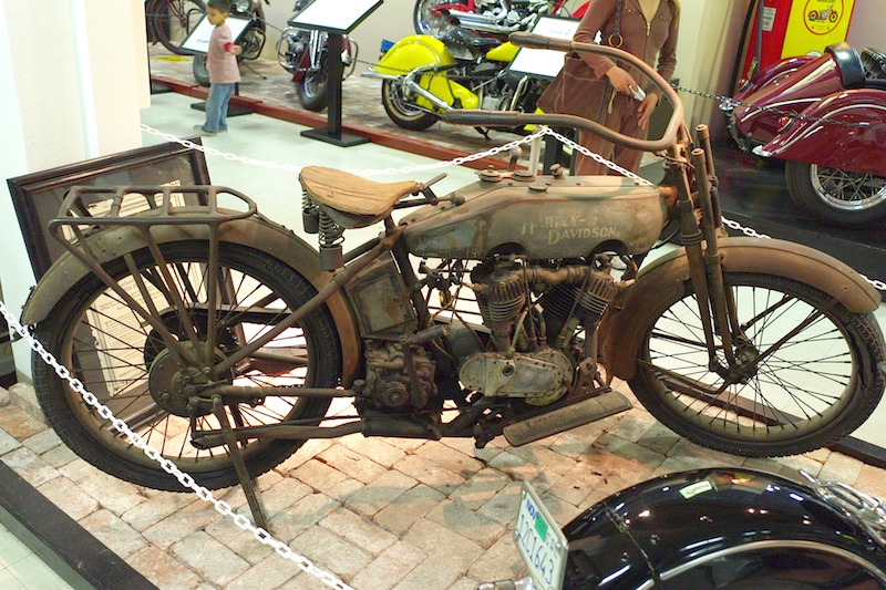 A very early HD motorcycle. Clearly, no restoration has been done.