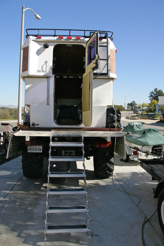 Since we had been working on the rig nearly full-time every day, the preparation mainly consisted of filling tanks (gas, water, etc) and loading our stuff. This shot shows that the stairs up to the tailgate of the truck are steep and scary. We have a running bet as to who will fall first. I am guessing that given a dark night and a few cocktails one of us will be the first to take a 5 foot dive.