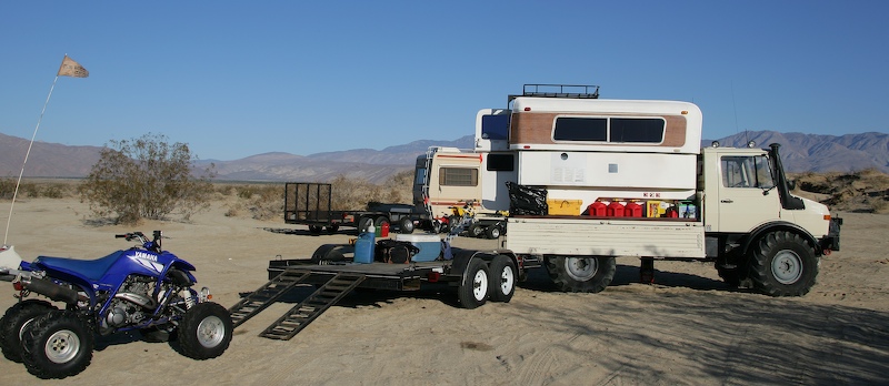 The majority of the major actions on the refurbishment of our Alaskan Camper were completed. We had gutted the electrical system and replaced all the components, redid the plumbing and added a roof rack and ladder. Now we were itching to use it 'for real'. My buddy Kai invited us to join him and his family in the desert east of San Diego to ride our quads and camp. So, we packed and headed out.