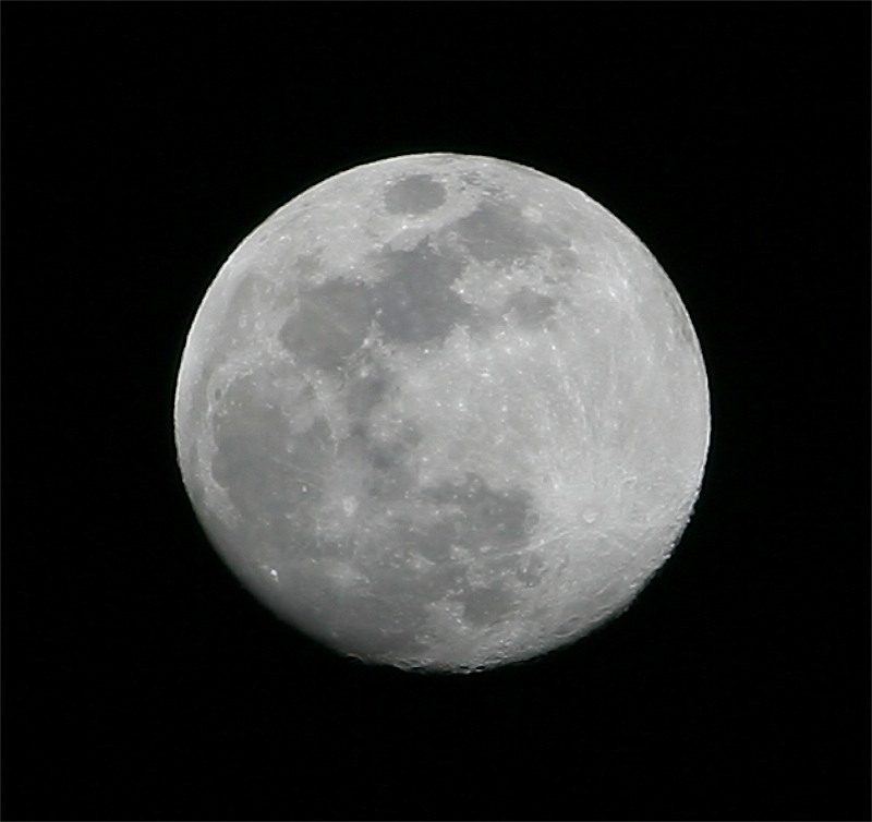 Nearly full moon as seen through clear desert skies in Borrego Springs, CA. Canon 1DsM2, 300mm at f5.6, 1/250