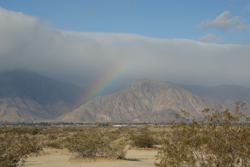 To the west of our position, the clouds were hanging over the mountain front and dissipating as they came to the east. We spotted this rainbow that was due to the mist produced by the storm. It hung there for nearly an hour and moved as the sun rose in the sky.