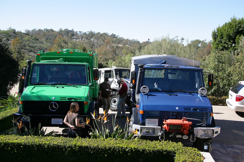 We left the noise and commotion of the off road show and went to our Richard and Jackie's place in nearby Rancho Santa Fe. There were perhaps 20-30 folks that showed up including wives and family members. One of the group flew all the way from Seattle to attend. Toby drove all the way from LA with his family in his "Dino Hunter" 2450. This rig was in the movie Jurassic Park. But, according to him, the movie's art department did not do the truck any favors as it took many months to undo their handy work: paint and modifications.