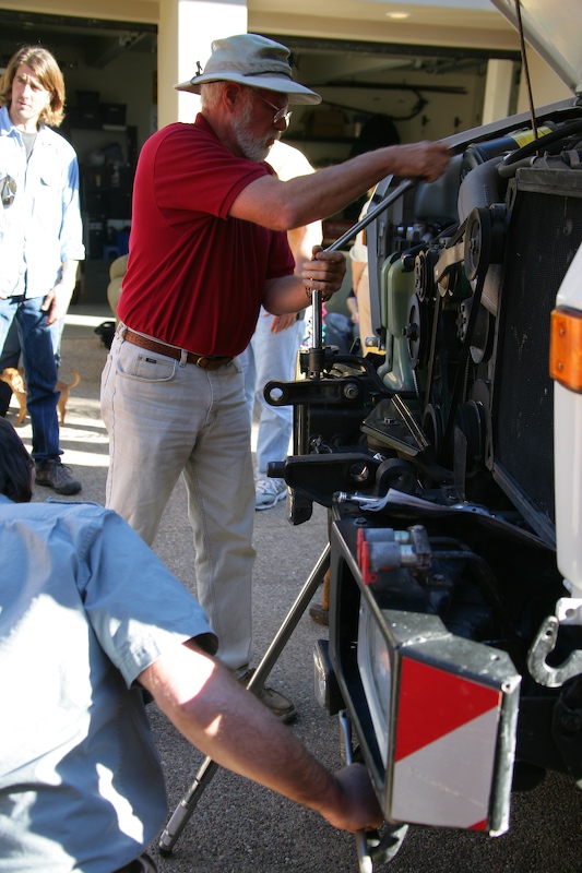 Mark removes the mounting hardware. Sadly, the dimensions of Richard's 2450L were not the same as the donor 1450L, so we could not attach the winch. The mounts will have to be modified to take into account the wider frame rails. This, I am sure, will turn into a big project. They always do!