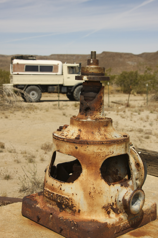 We filled up our water tanks before heading out into the desert again. Water is a rare commodity in this area and without it, no human life exists. This sign tells the story of an old well that we passed on our way to the mines.