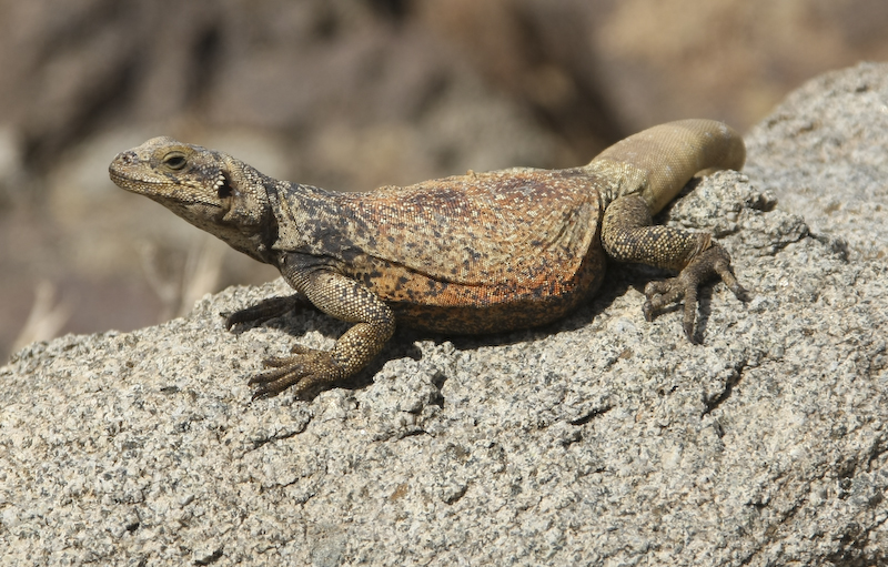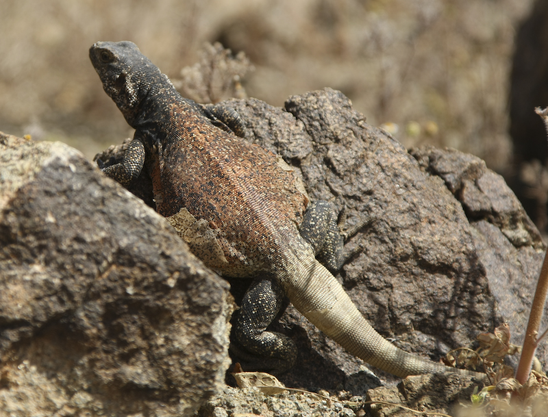 The camp site came with its own lizards, but this fellow is not a chuckawalla. Or if he is, then he has been working out, unlike his buddies down in the valley.