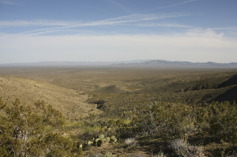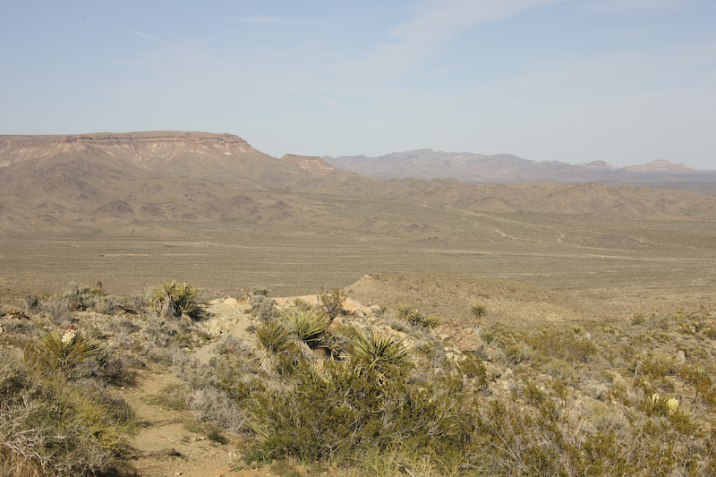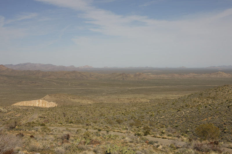 To the southeast of the caves, we got great views of the Mojave desert. Interstate 40 is out there at the base of the closest mountains.