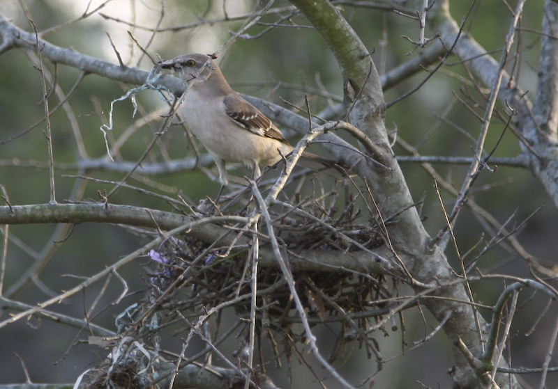 Spring had arrived in the area and birds were building nests. This fellow was engaged in some home renovation.
