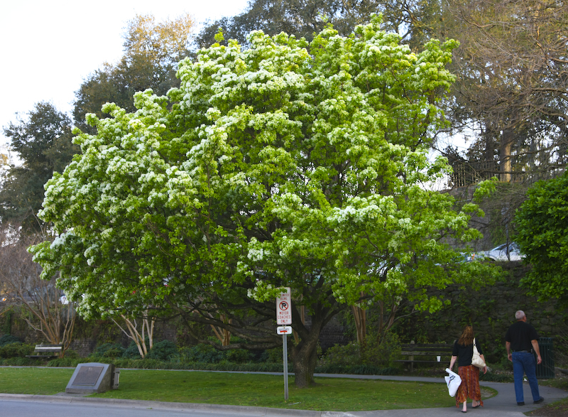 A number of the trees along the riverfront were in bloom. I think this is a Dogwood tree.