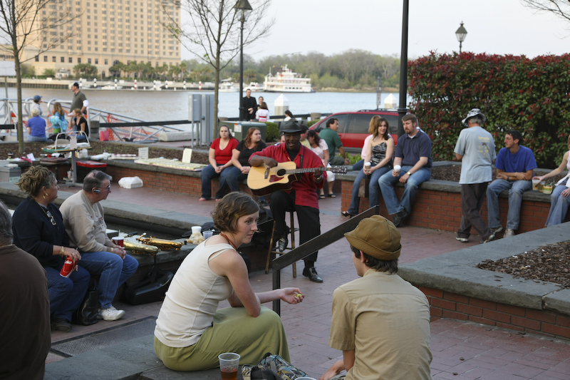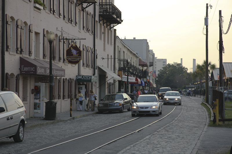 This is the start of the riverfront tourist area. Note the cobblestone walkways and trolley track. Most of the buildings are original, some dating to the late 1800's and some were Civil War survivors.