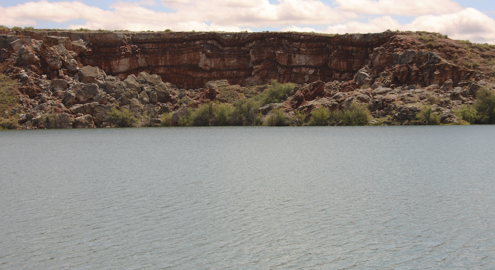 Bottomless Lakes are so named because they have not fully plumbed the depths of the water. The lake is spring fed and is actually a sink hole into the Permian limestone which is the caprock in the area. There are a number of these lakes along the uplift line visible as the hillside above. Except for the rain and strong winds, the stay was pleasant with nice clean amenities.