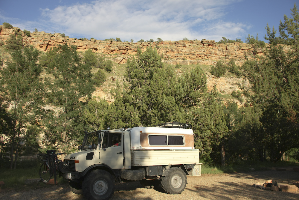 At the end of the day, we made it to Santa Fe. While cruising main and seeing the plaza area, I noted that the brakes were getting a bit spongy. Later, they fully failed. After a call to my master-mog-mechanic buddy Kai, he determined that the cause was likely contamination in the air brake controller. The contamination was causing the brakes to not fully release and therefore heating the brake fluid until it boiled out of the reservoir. The contamination may be out, or not. I will not know until I use the truck for awhile. I am loathe to start tearing into the brake system while I am on the road. I am not too good at mechanical stuff and the worse case would be that I disassemble the parts and not be able to put it back together.