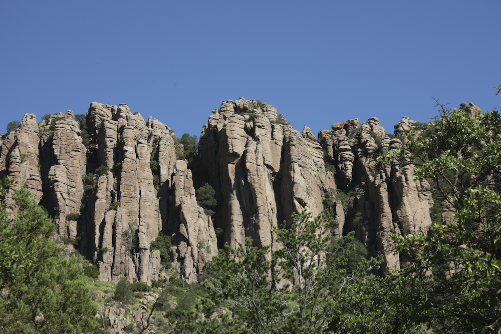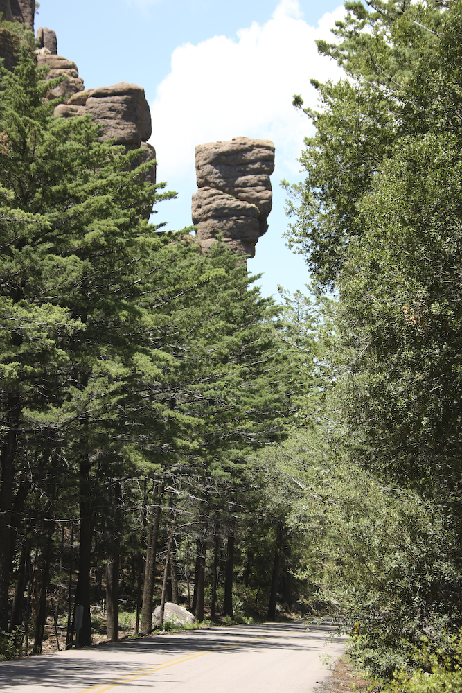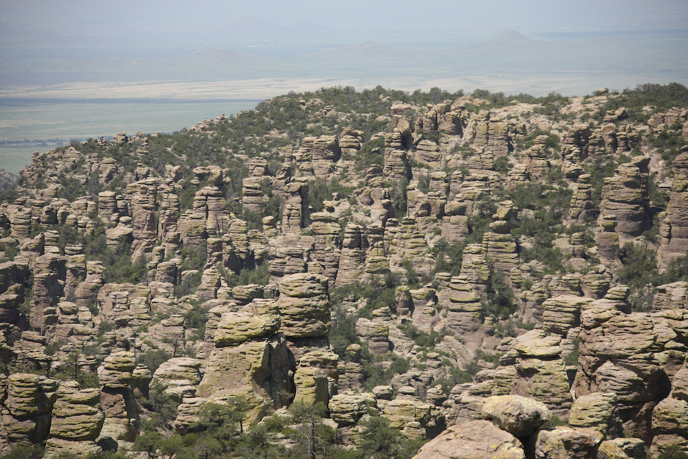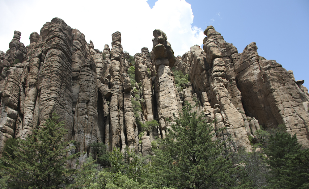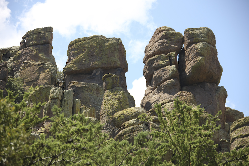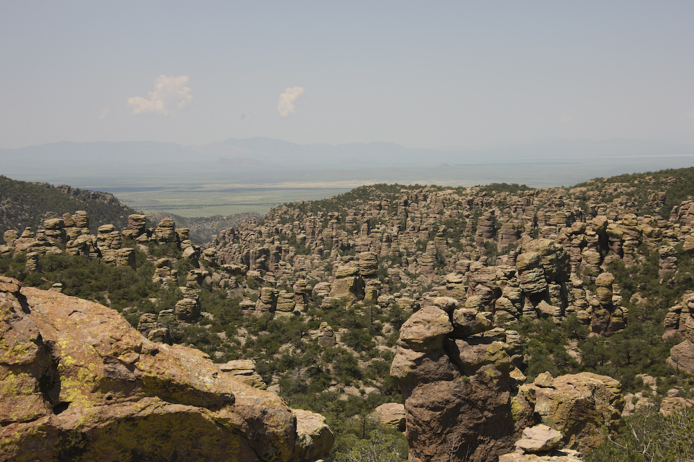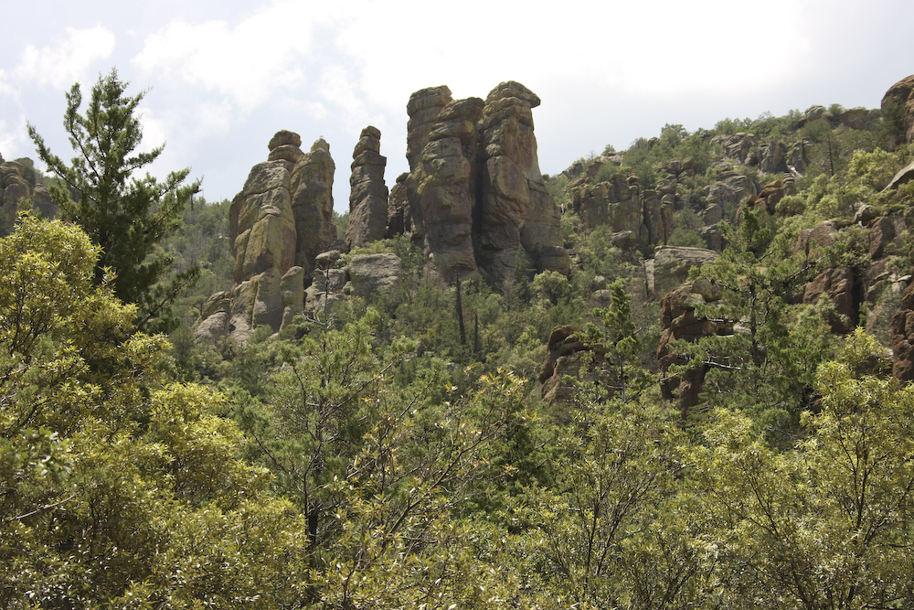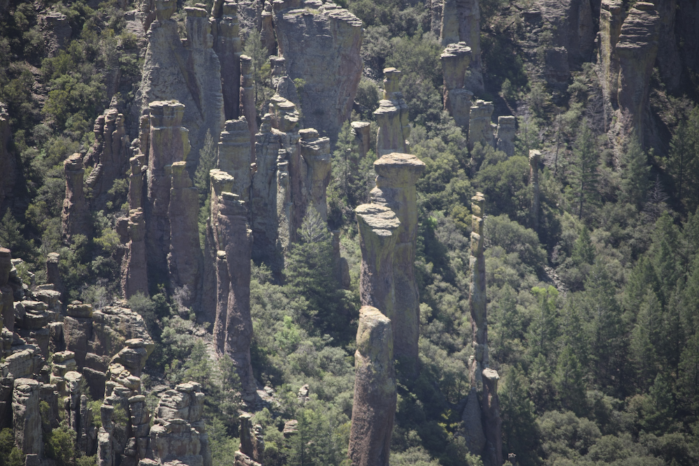 The Chiricahua mountains means "land of standing rocks". The eruption of the Turkey Creek caldera many thousands of years ago left the area covered with rhyolite which then eroded through freeze-thaw to produce these fantastic structures.