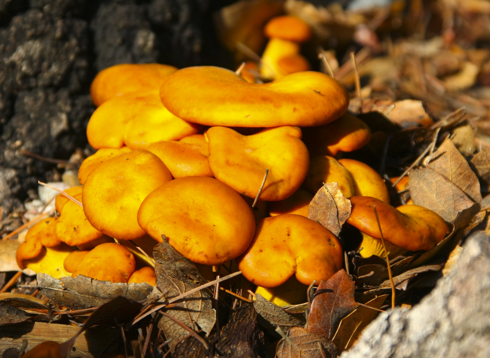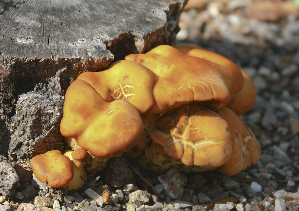 The mushrooms appeared in clusters as the bulk of the organism is underground and the spore-producing heads are the only visible part.