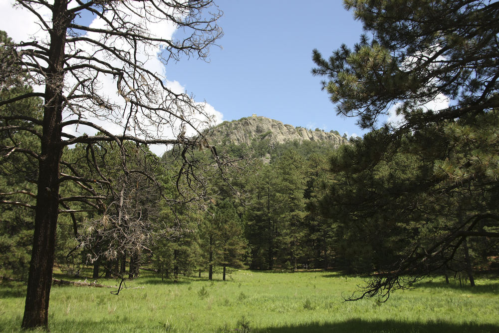 The meadow area had a view of the Barfoot lookout on the peak.