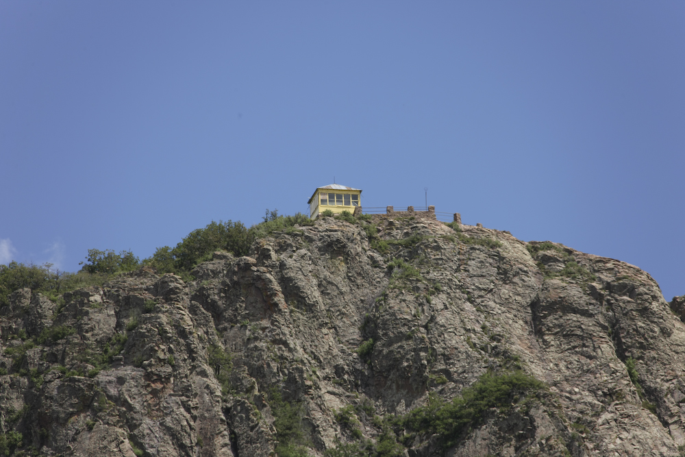 A close inspection of the structure will reveal that this lookout shack is falling into disrepair and unused.