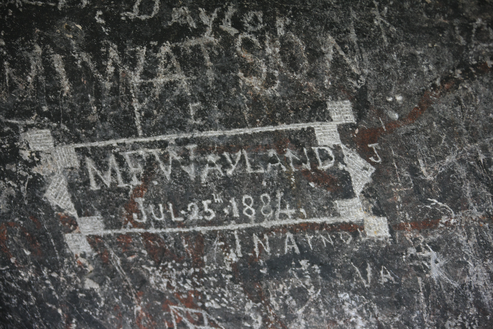 At least back then, they had some class. Graffiti today is lame and done with spray paint. Due to the bugs and the heat, we had little patience for a longer walk. Plus, since we could not camp here, the next closest place on our route was over a hundred miles distant, so we decided to bag it and leave.