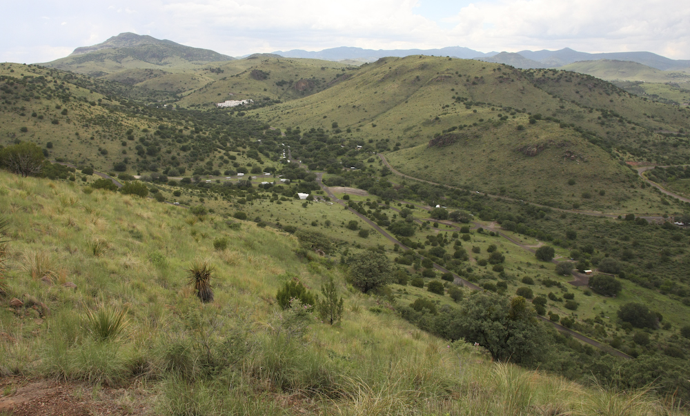 The state park was not that busy so we got a nice camp site close to the (currently) dry creek bed. Before we set up for the night, we headed up the scenic drive that provided an overlook of the surrounding area. The camp area is in the center of the photo above and the large white structure as a CCC built hotel called "Indian Springs".