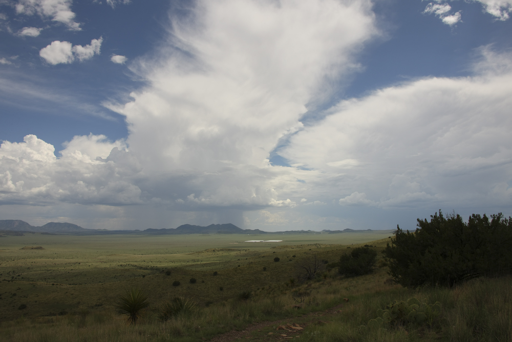 To the south, toward Marfa, TX, thunderstorms were dousing the hills.