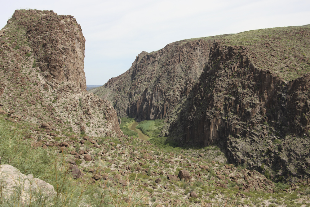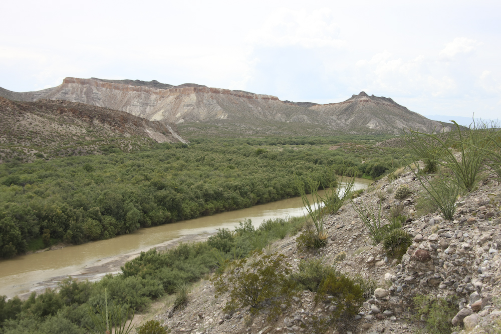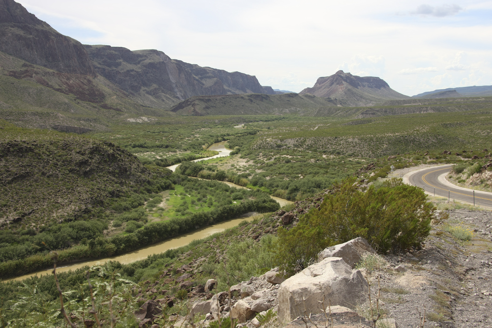 We reached an overlook at the top of a 15% grade that afforded a good view of the river looking west toward Presidio.