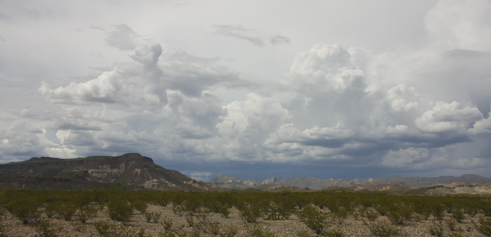 Thunderheads and rain build to the east of our position -- directly in our path to Terlingua.