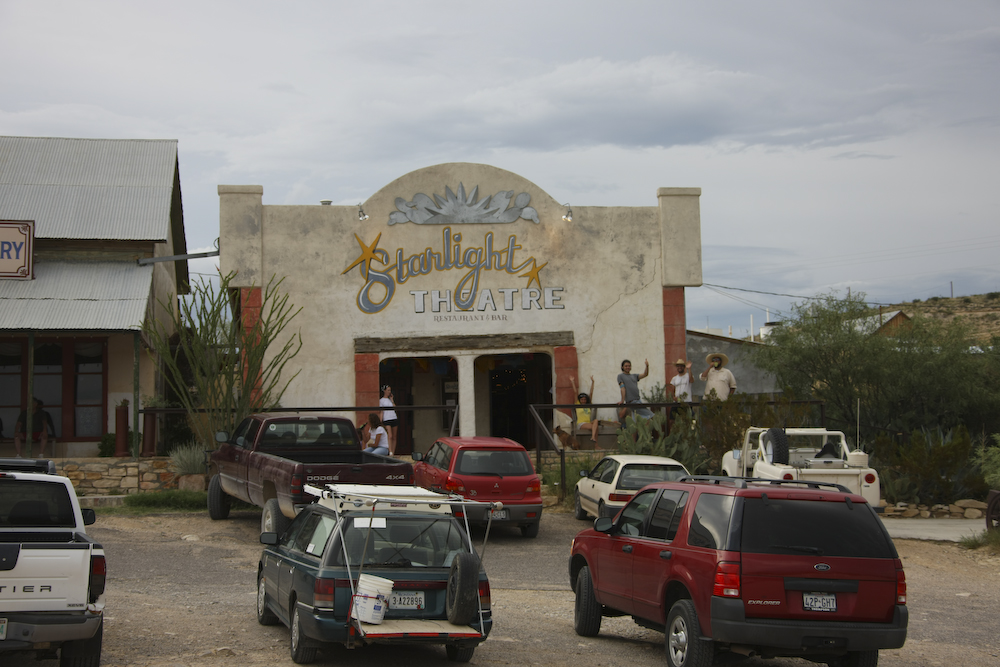 Our first view of the massive Chisos Mountains to the east of Terlingua. Tomorrow, we would travel all the way around the Chisos via the dirt trail to the south, near the Mexican border. Because it was still very hot, we decided to get a motel with air conditioning. The accommodations were basic, but sufficient. The thunderstorm hit after we were in our room. It did not rain much, but the wind was fierce. After the storm subsided, we asked the clerk about places to eat. One of the suggestions for dinner was the neo-bohemian "Starlight Theater" in "Terlingua Ghost Town" so we decided to check it out.