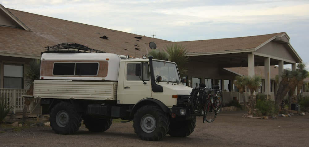 The very rugged Sierra del Carmen in northern Mexico is transected by the Rio Grande. Note the bridge over a "dry" wash in the lower right of the photo above. From the dirt track, we aired up the tires and headed south to Rio Grande Village, the campground and a hot shower.