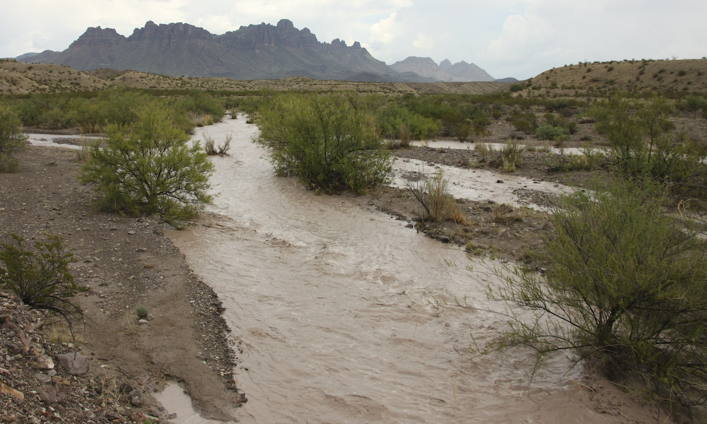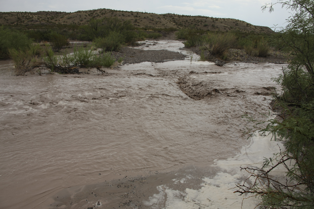 Kathleen got this photo of Terlingua Creek eroding its banks. Note the wave of the bank as it crashes into the fast running water.