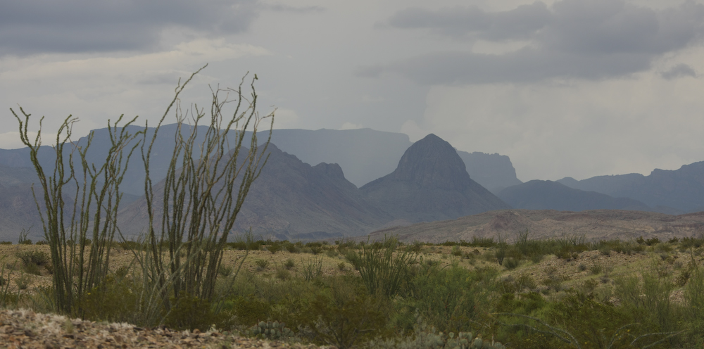 The clouds produced a dramatic backdrop for the Chisos Mountains.