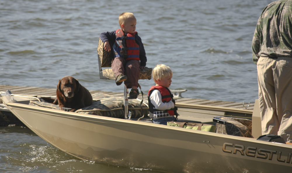 In the marina on the Missouri River, I spotted this group preparing to go out on the river/lake. I thought that it was interesting that Fido knew his place.