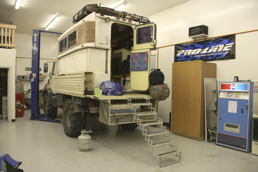 When we got back into cell range on the east side of the mountain, we called Ben again and he offered up his shop. In the 2+ hours it took us to get back to his place, he re-arranged his shop to allow us to park well away from the door to provide extra room for the repair actions that were to come.