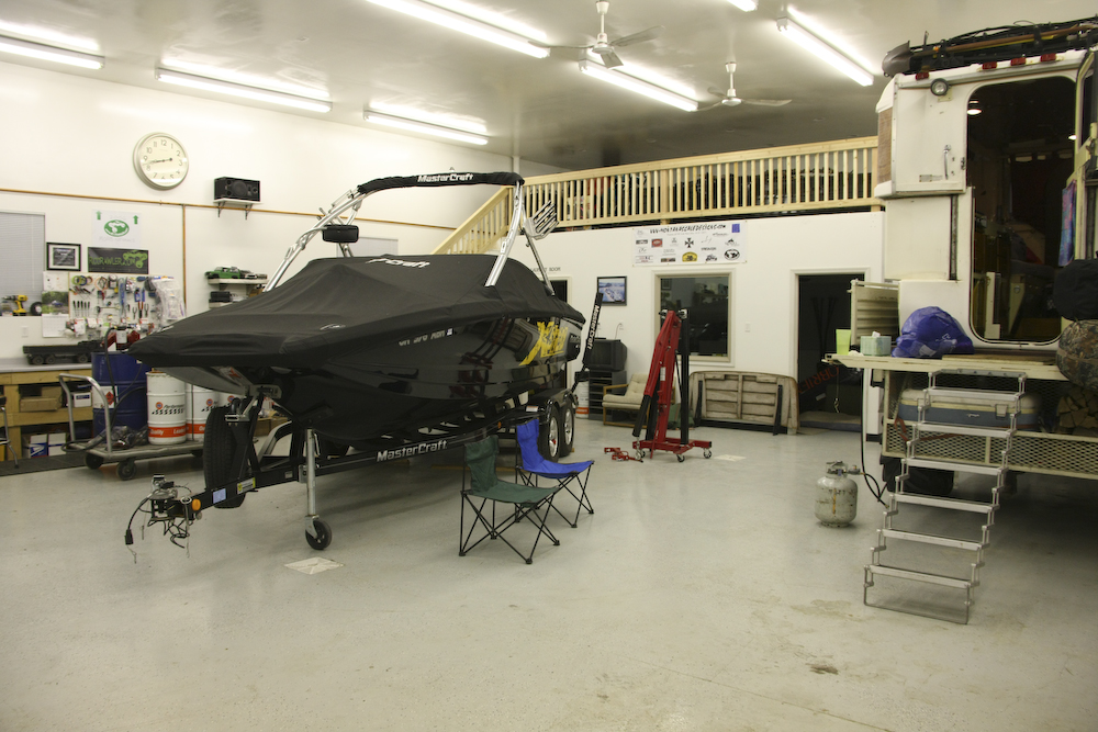 His shop is so big that there was plenty of room for both his boat and my rig. The drive back to Helena was rather stressful, so we decided to hold off the actual repairs until the following morning.