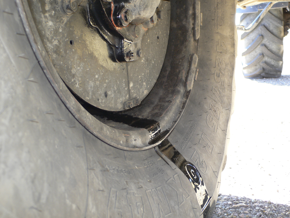 About 10 miles north of a small village called Avon, both Kathleen and I noted the truck lurch. The lurch was followed by a vibration, so we stopped to inspect. When I did a temperature check of the hubs with my hand, the driver's rear was smoking hot. Literally. When I got under the truck, I could see the smoke coming from the hub. I took off the wheel for a closer inspection, including checking the oil level in the hub. There was no oil in the hub, but no sign of a leak either. Only when I looked on the inside of the wheel did I see the cooked oil. It never produced the pin-wheel leak pattern that I expected. The conclusion was that the bearing failed first, not the seal. Not all that surprising given that the truck is 30 years old.