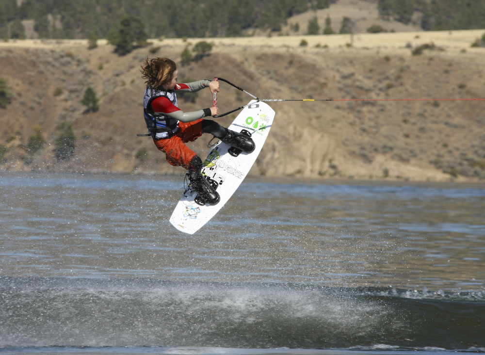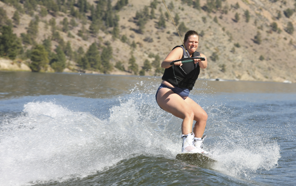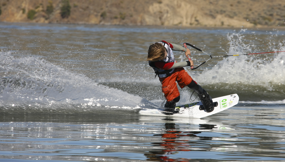 More of the "concentration face" as she crossed the wake into the pocket behind the boat.
