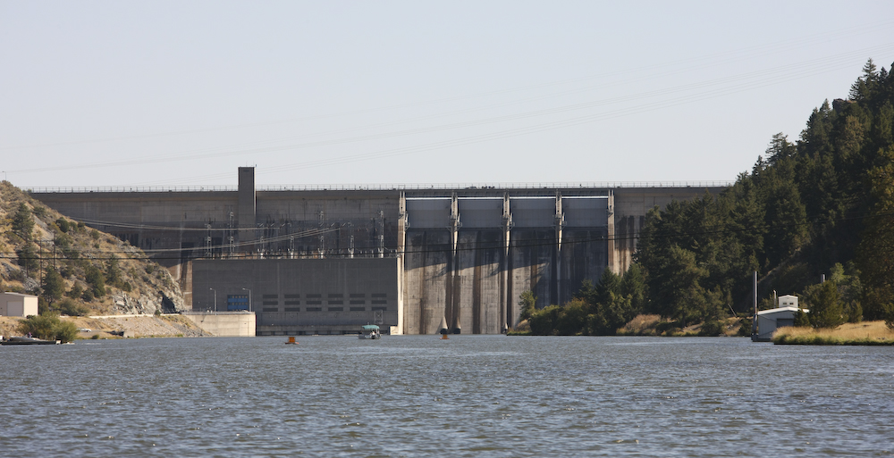 A view of the dam. This dam is used for hydroelectric power as well as flood control.