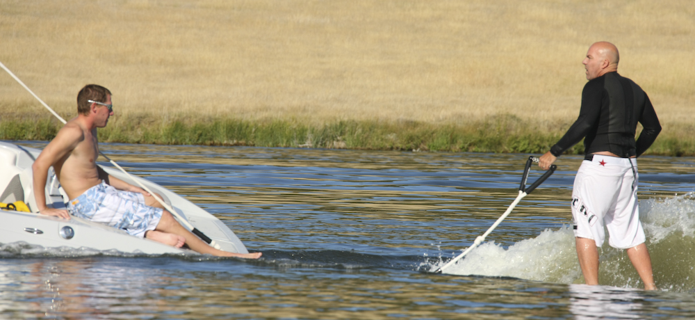 Making the best of a bad situation with the bad axle hub, Ben Palmer invited us to go with him on his mega-trick ski boat on Hauser Lake. Hauser is on the Missouri River and is very close to his home in Helena. The photos below are what we saw.