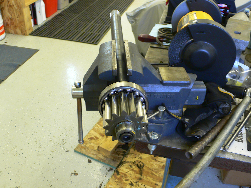 Tightening the driver gear onto the axle shaft. I bent Ben's vice handle trying to get enough "bite" on that hardened shaft to meet the torque specification.