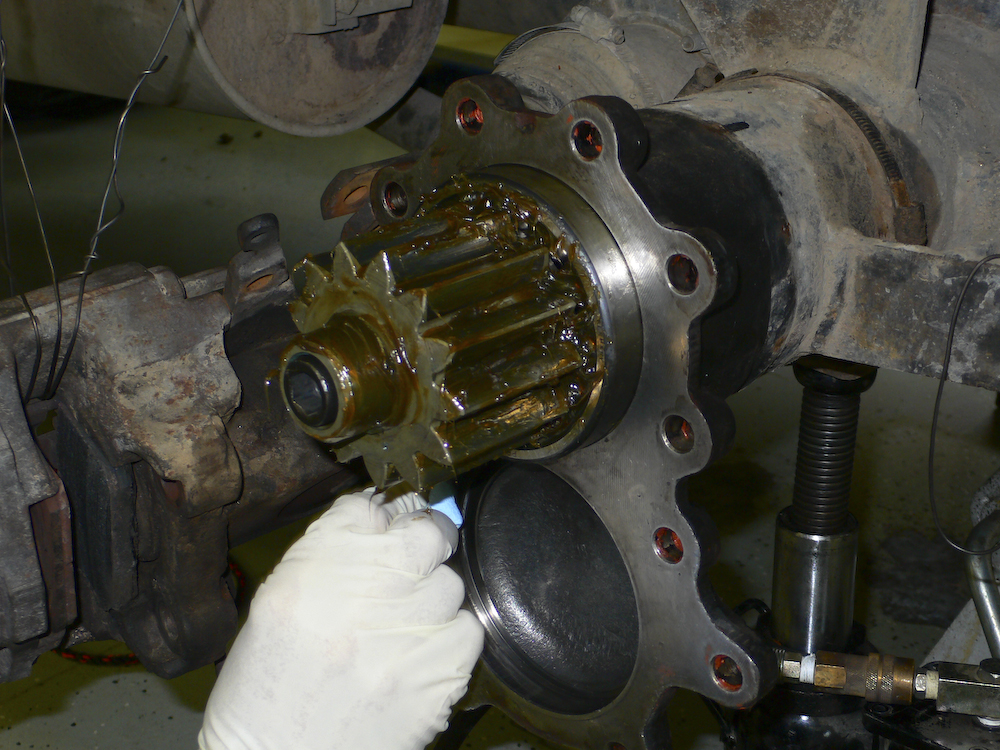 The first step is to measure the casting, the axle housing and the bearings to determine if shims are needed.