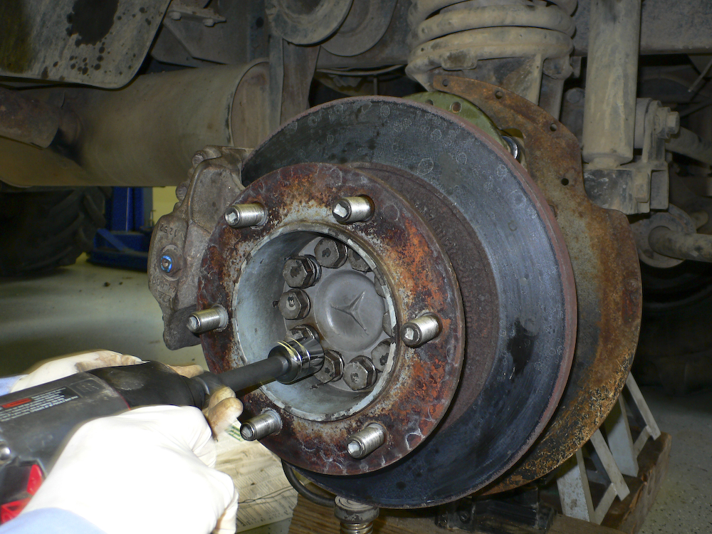 Those hub bolts have to be tight. Real tight. 320 Nm which is about 2800 inch-pounds. One of Ben's buddies lent us his high capacity torque wrench.