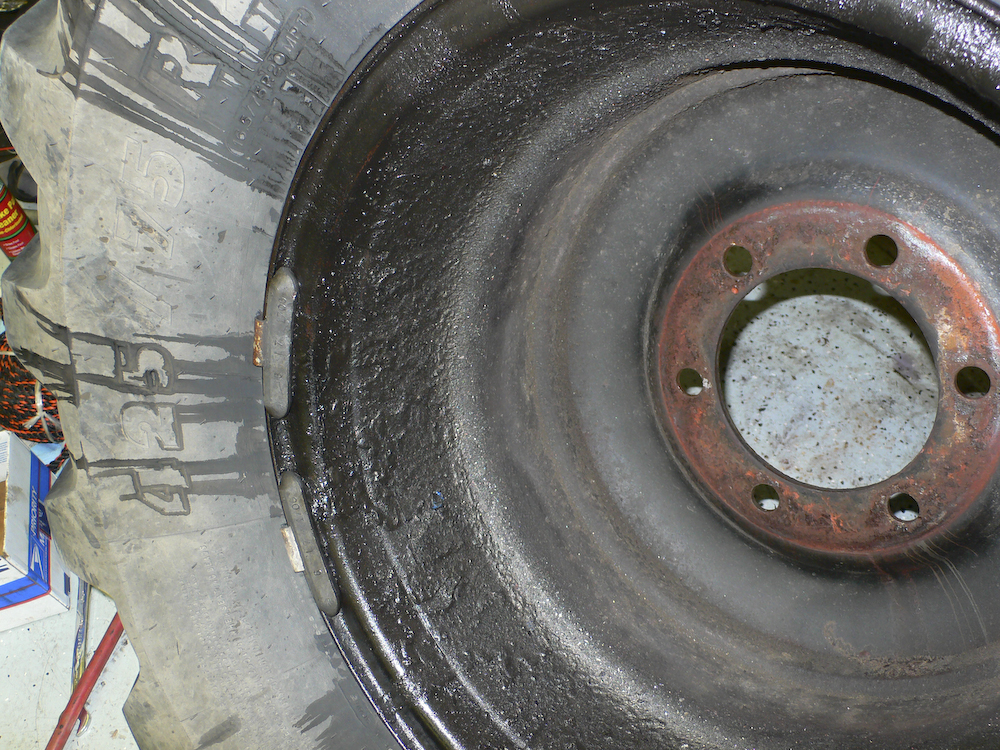 Yuck. Ben pointed out that the inside of the wheel was coated with the debris of the hub failure -- grease and burned oil as well as metal shards. I had to clean it with a scraper and it took about 30 minutes to get it adequately clean.