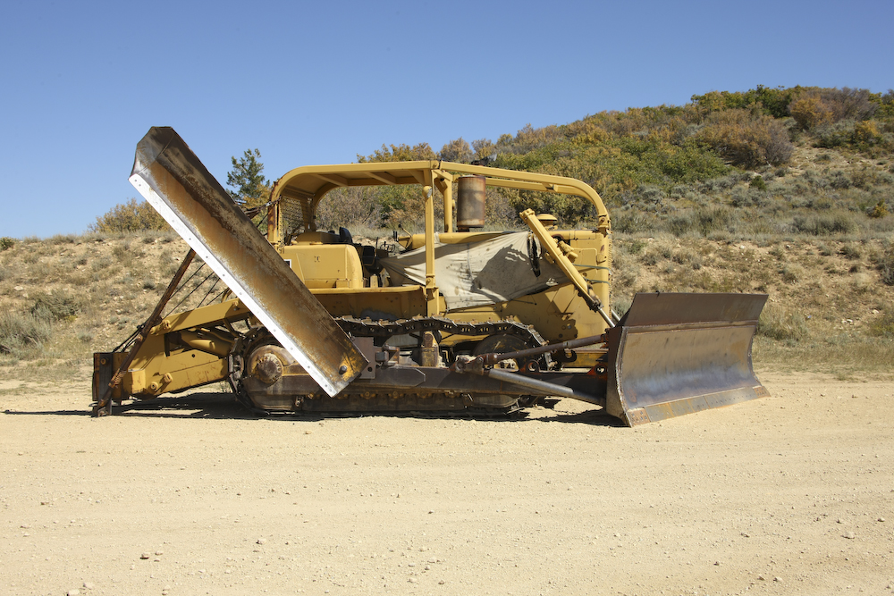 The roads in the area, while steep and narrow, were in pretty good shape. We came upon this customized bulldozer at the top of the ridge. I went over for a closer look and discovered that the side blade is raised and lowered by an interesting cable hookup with the ripper attachment on the back. The ripper is hydraulically activated and when it is raised, the cables allow the side blade to fall into the plowing position allowing the cat to clear a wide swath with one pass and push dirt over the edge of the cliff.