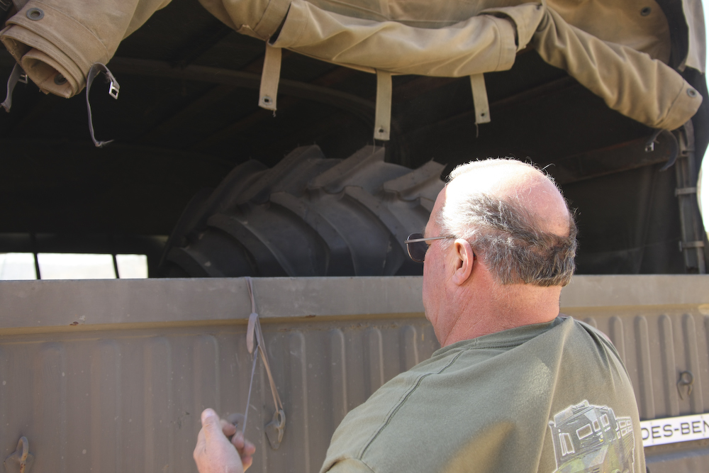 Terry's tire restraint came loose on the trail requiring an immediate repair.