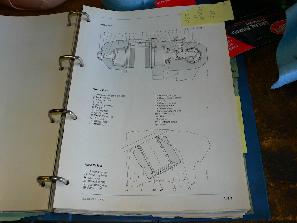 The inside of the brake assembly is quite complex. Sadly, the leaking seal required a complete disassembly of the whole casting to effect a repair. Part number 29 was causing the leak and the whole freakin' thing had to come apart to get to it!