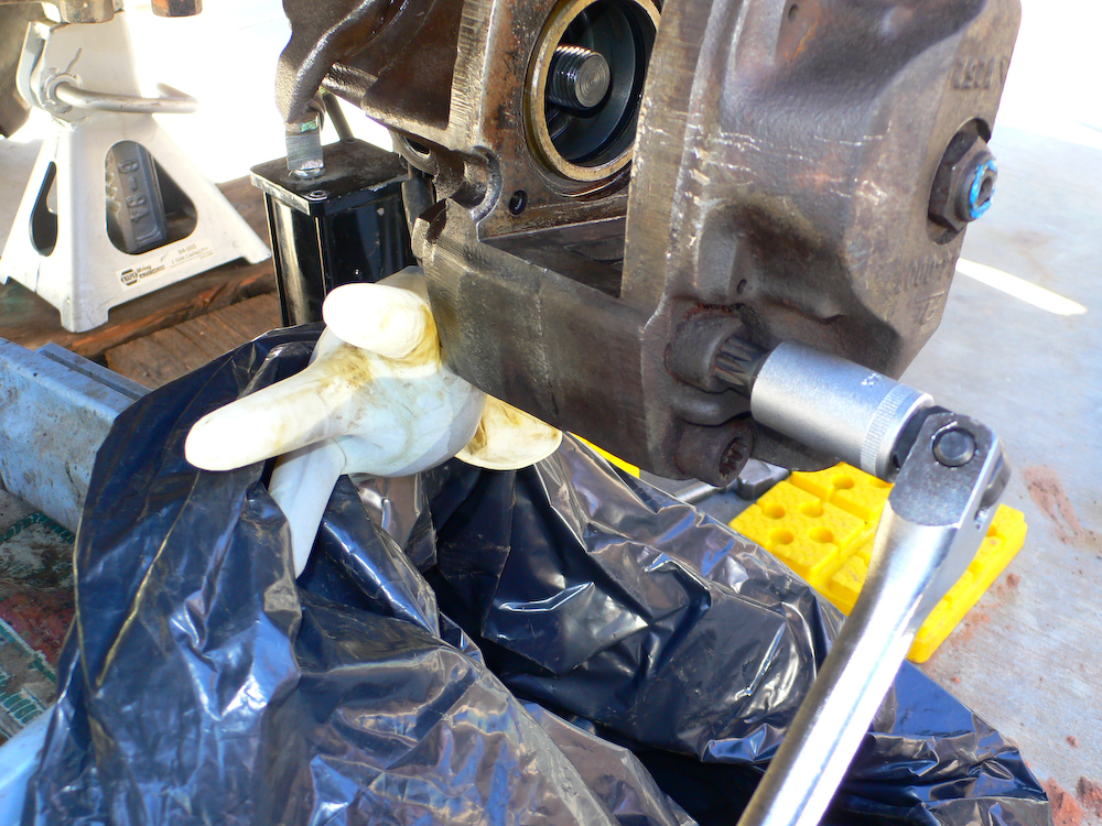 One way point in this process is the removal of the plug that protects the end of the parking brake actuator. The manual called for drilling a hole into the cover, but that would have put debris into the housing. I opted for welding a nut on the plug and then hooked a slide hammer into the nut. It worked easily the first time.