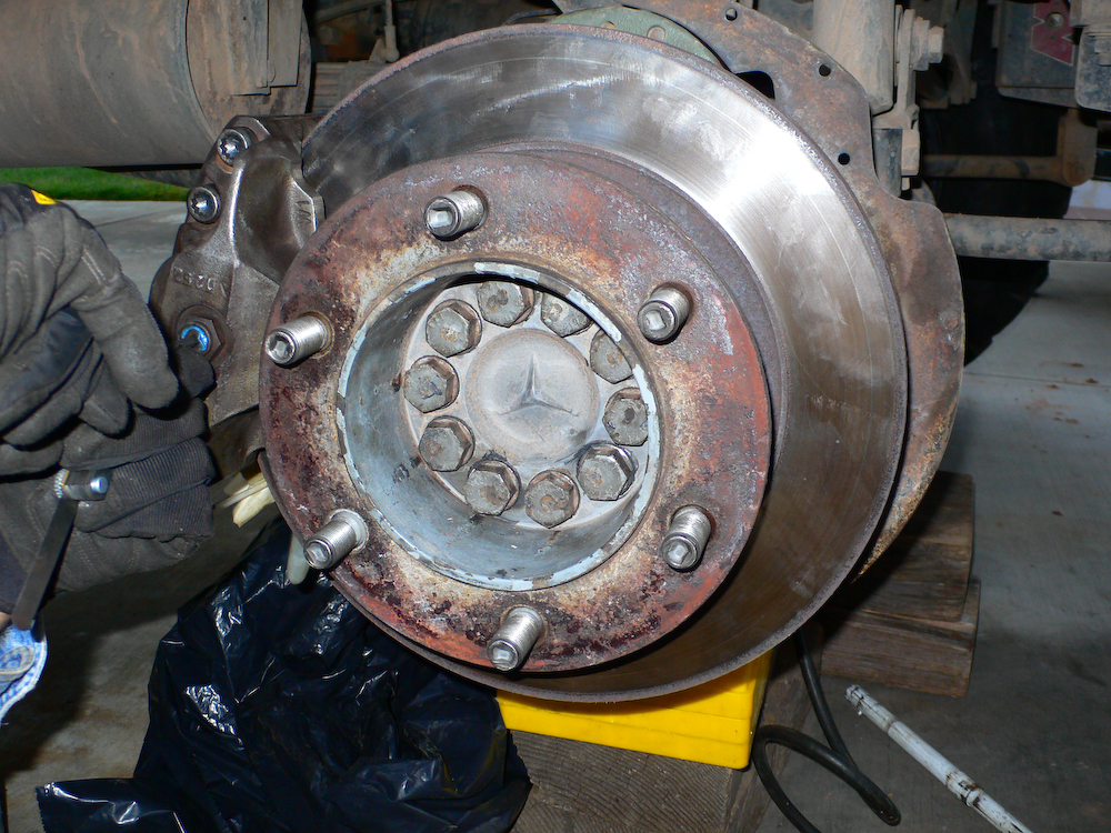 After the disc and hub are reinstalled, the gap on the brake pads were adjusted to specification. Subsequent to the adjustment, the wheel was attached and we moved on to the other side.