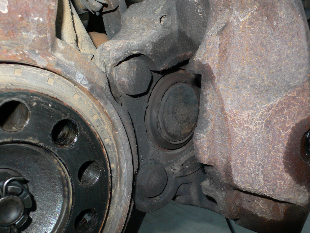 The other boot was damaged as well. The good news was that these could be removed and replaced without removing the caliper assembly. Once I got the big dirt and contamination removed, I removed the pistons and replaced the seals and boots. Then, the calipers were retracted and new brake pads were installed, the disc and hub were reinstalled, and the wheel replaced.
