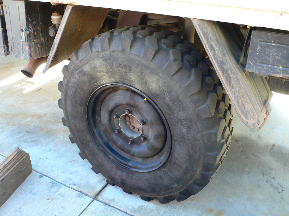 These tires and rims look nice and clean, eh? That is because Kathleen and I just spent a whole day mounting these used MPT-80s on new rims. I wore my XM-47s down to the carcass on the road trip and Mark Mitchell was kind enough to provide me with these "new" old tires to meet my needs pending arrival of different used tires. More on that later. Make no mistake about it, dismounting and re-mounting these tires is a ton of hot, sweaty work.