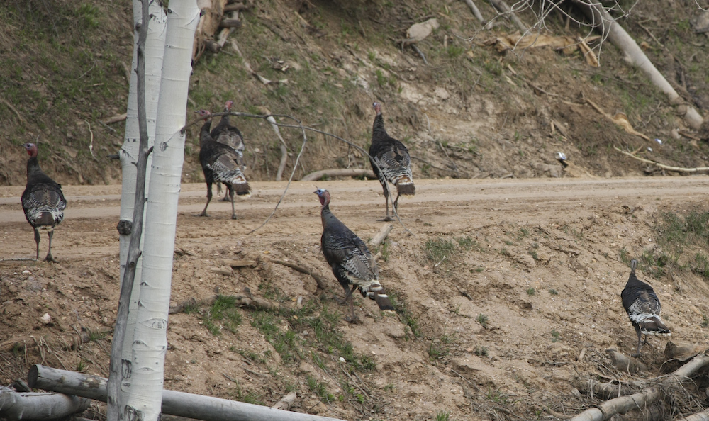 There was lots of game in the area. Here wild turkeys march past like they own the place. They do, of course.