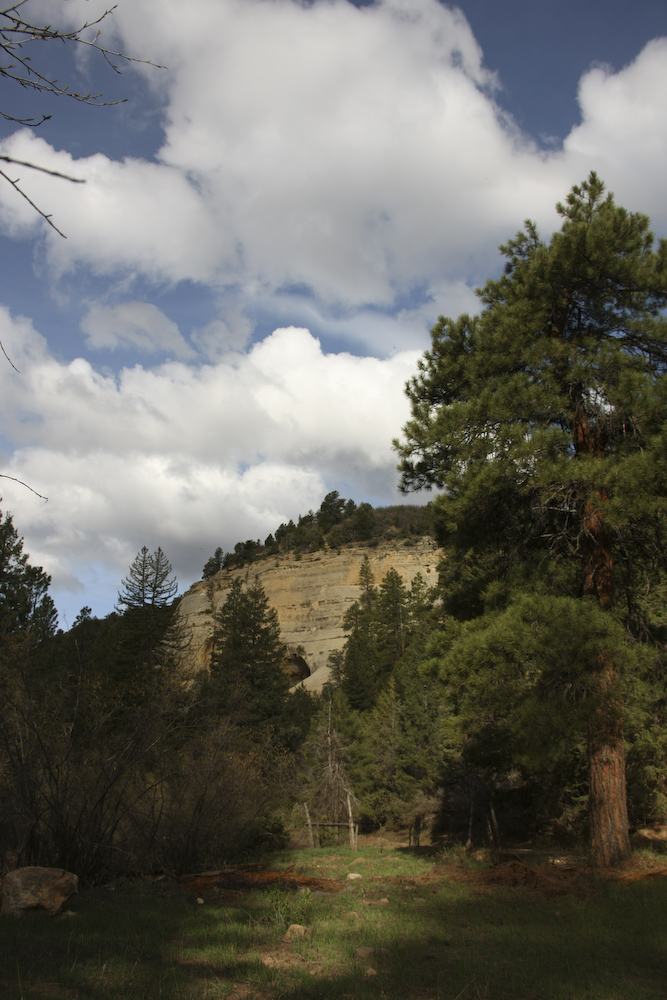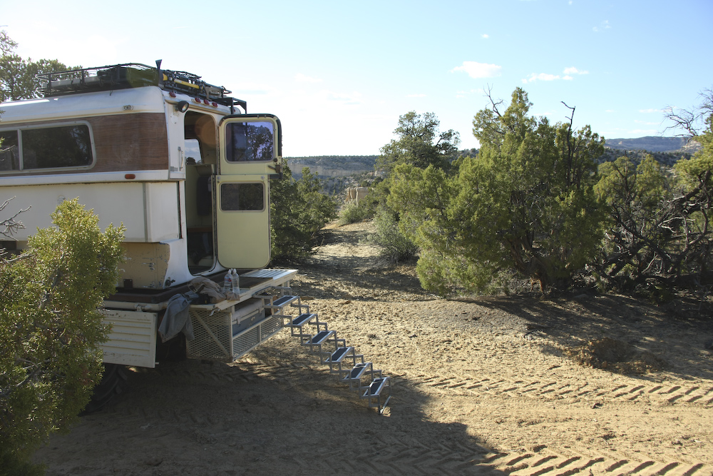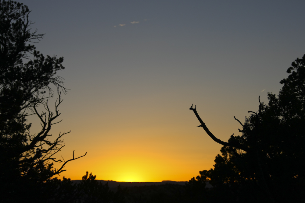 When we finished at Bryce, the plan was to head down slope to Tropic, then south to Kodachrome Basin State Park. But, it was late in the day and when we got there, the campground was full. So, we pressed on. Another 10 miles down the road, we took a north turn and went until we found a power line access road which we followed until we hit an acceptable camp site. Above is the view from our camp looking west.